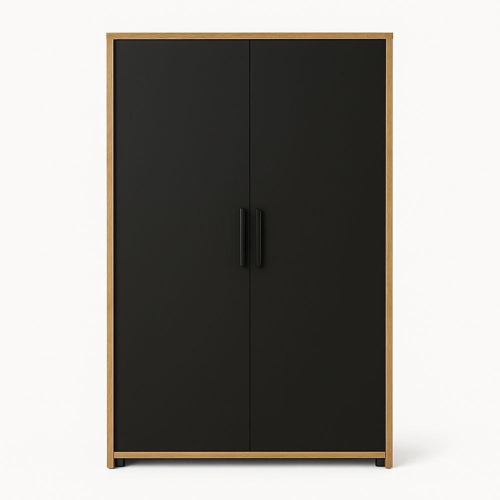 Armario de Puertas Dobles Negro y Madera para Almacenamiento - 180x105x52 cm