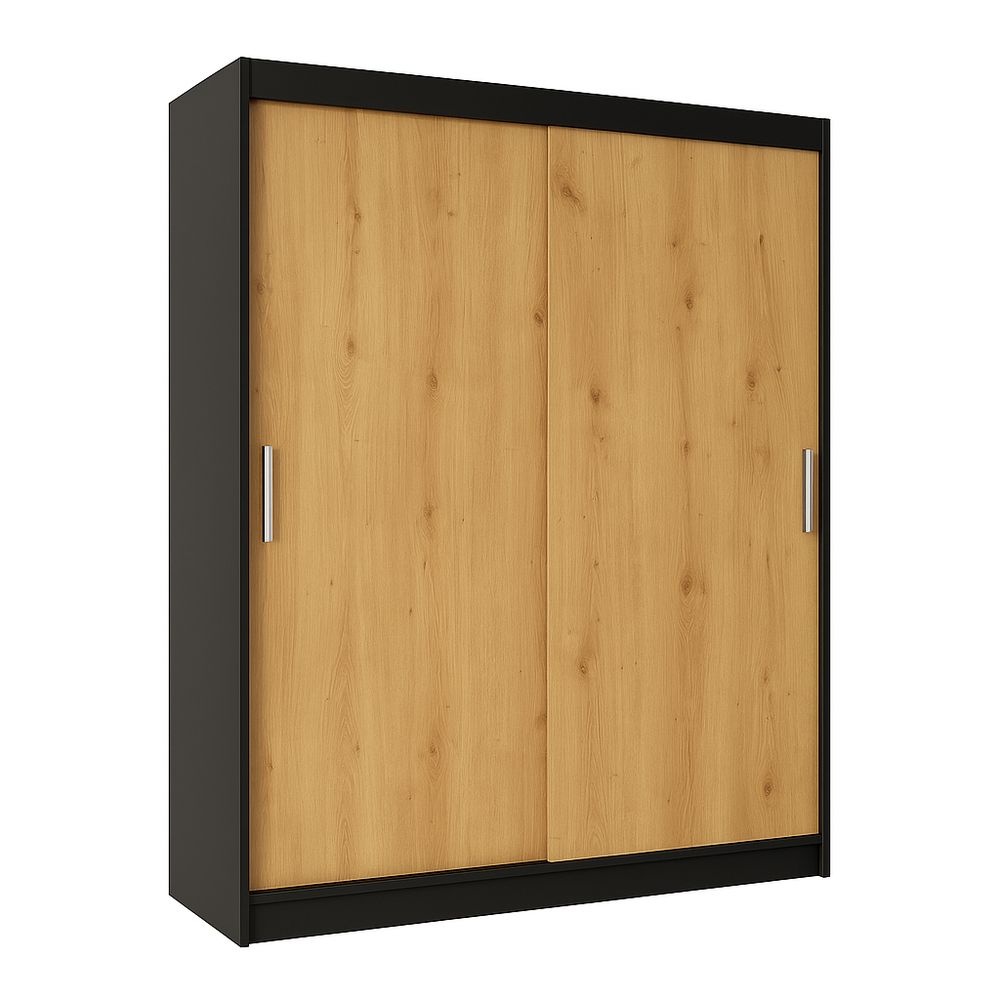 Armario con Puertas Correderas de MDF Negro/Madera 200x180x60 cm