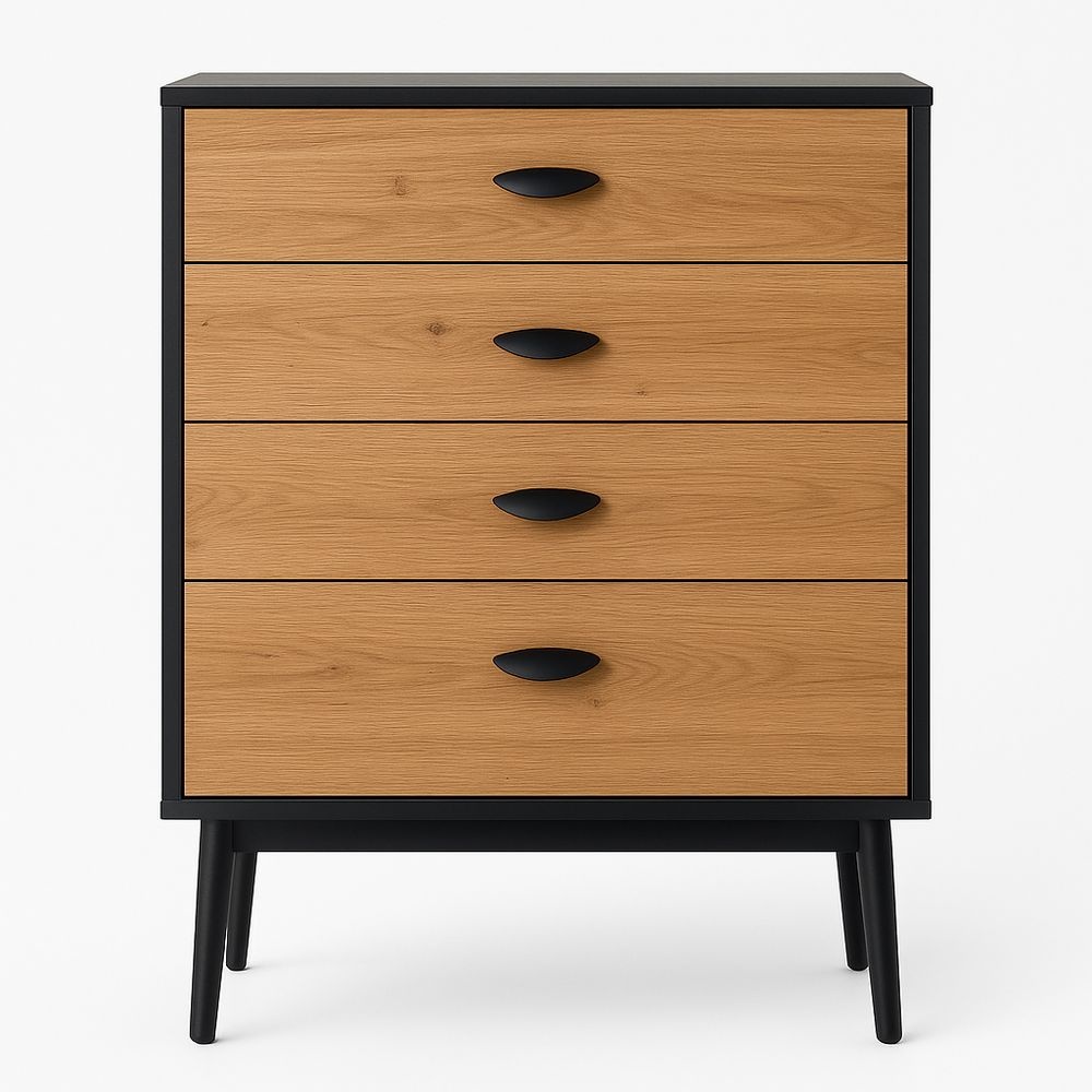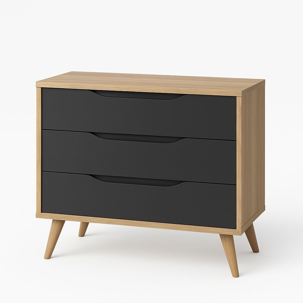Cómoda de MDF con acabado en melamina y patas de roble macizo, 75×80×40 cm, con 3 cajones