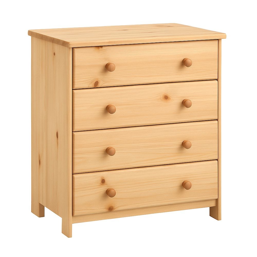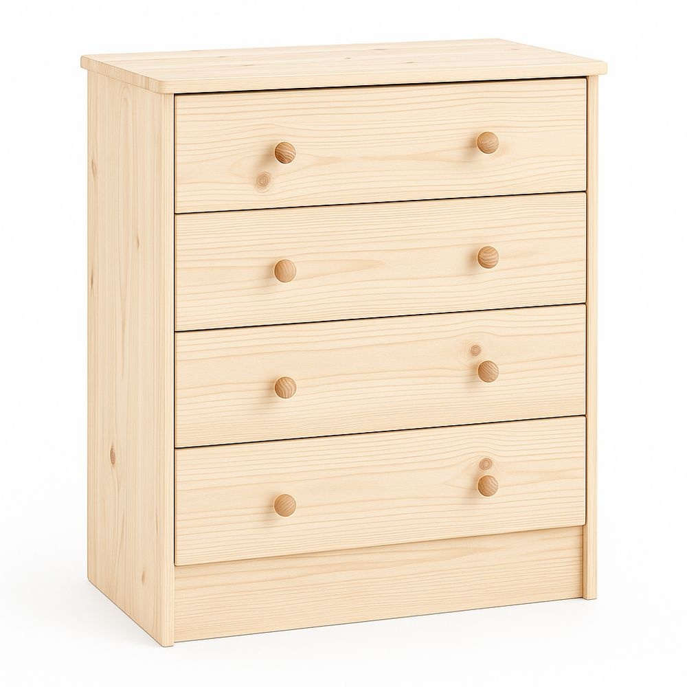 Cómoda de Madera Maciza Natural 4 Cajones 80x45x95 cm