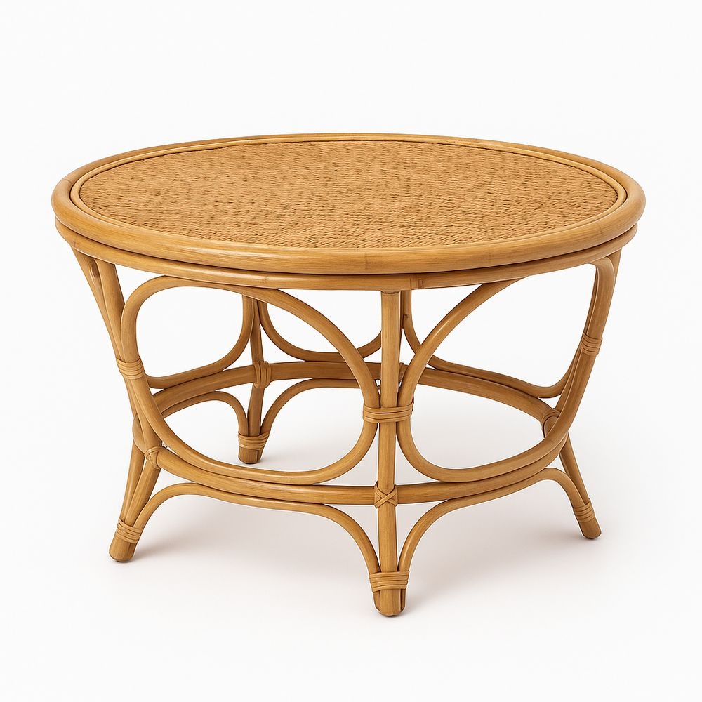 Mesa de Centro Redonda de Ratán Natural 80 cm