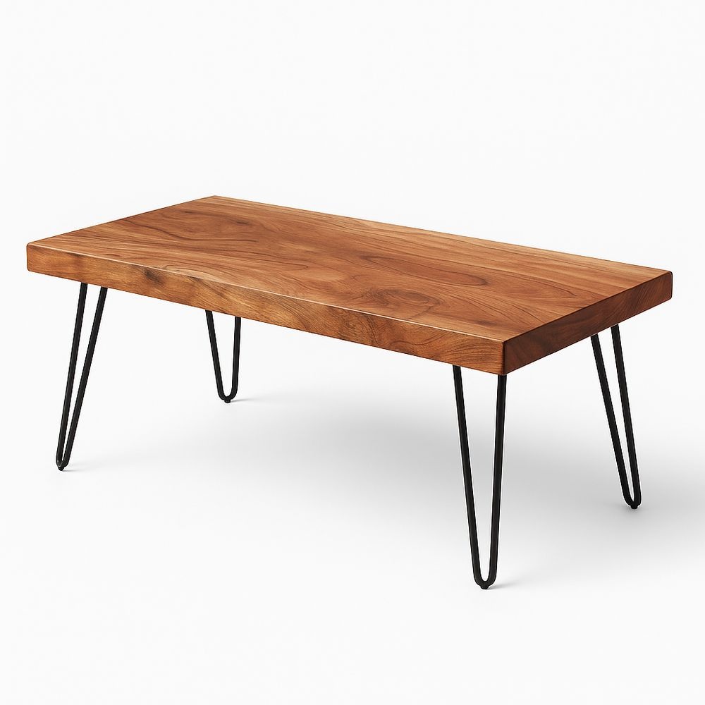 Mesa de Centro Rectangular de Madera de Acacia con Patas de Acero Negro 120x60x45 cm