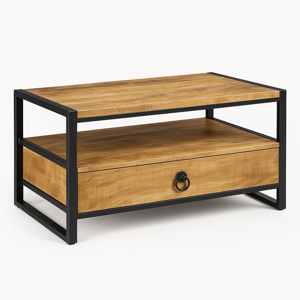 Mesa de Centro de Madera y Metal con Cajón Roble/Negro 100x60x45 cm