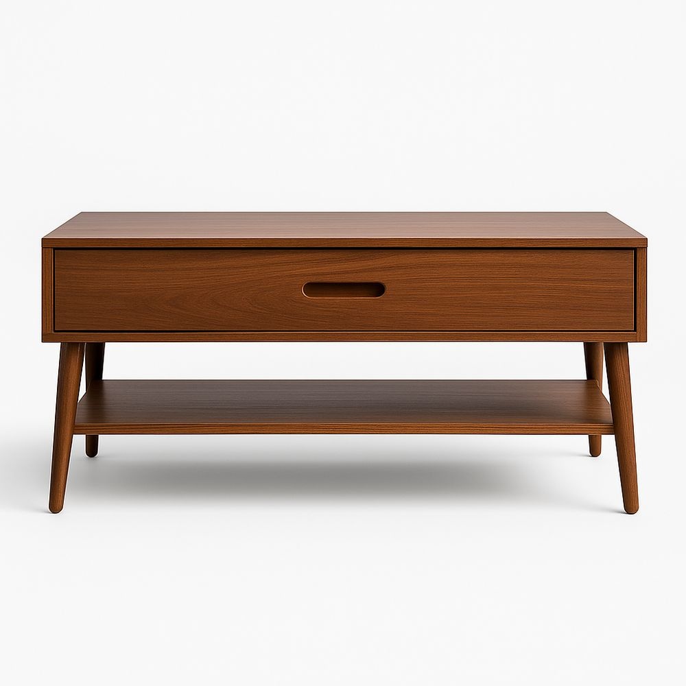 Mesa de Centro Rectangular Madera Nogal con Cajón y Estante 100x50x45 cm