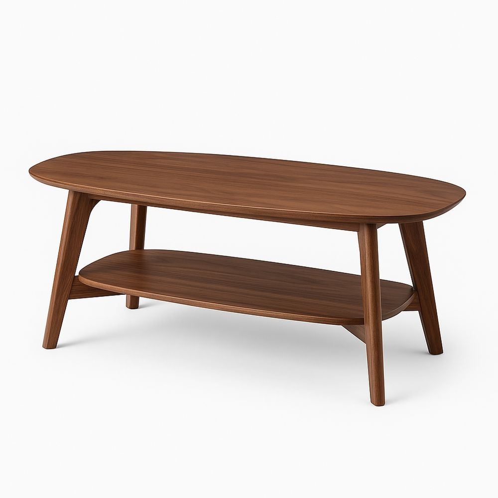 Mesa de Centro Ovalada de Nogal con Estante Inferior 120cm x 60cm x 45cm