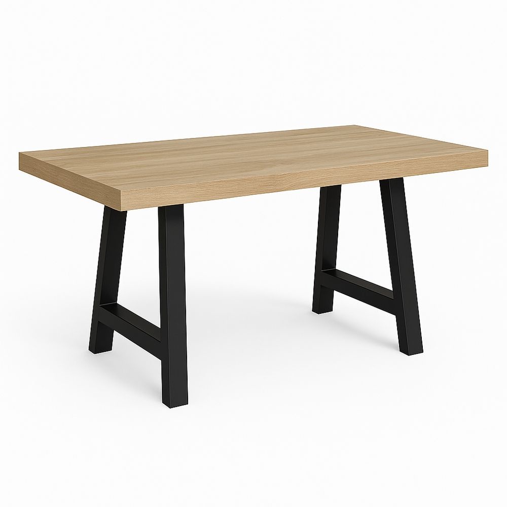 Mesa de comedor MDF chapado Roble Patas acero Marrón claro Negro 180×90×75cm