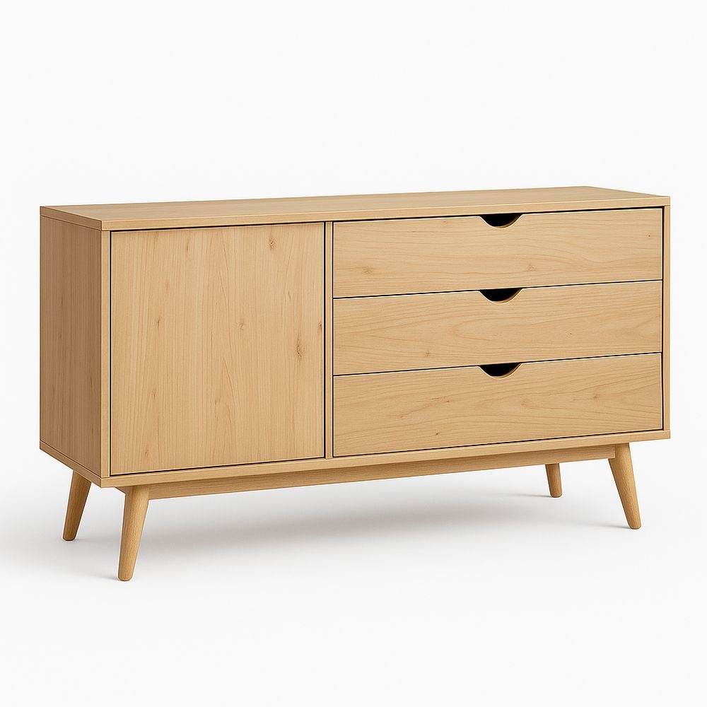 Aparador MDF chapado madera Natural 3 cajones 1 puerta 120×40×80cm