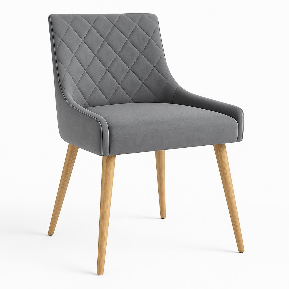 Silla tapizado poliéster Patas madera maciza Gris Capitoneado 82×45×44cm