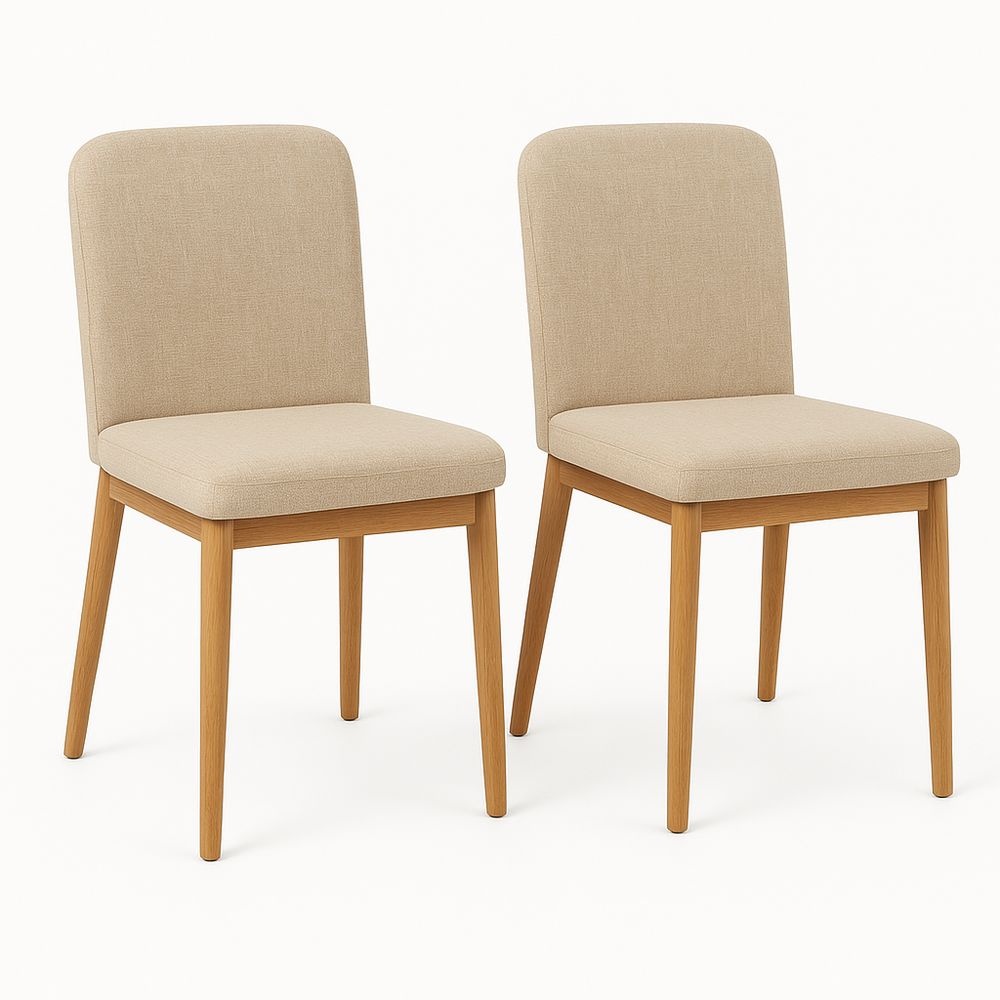 Juego de 2 sillas Tapizado algodón Estructura madera maciza Beige 85×45×50cm