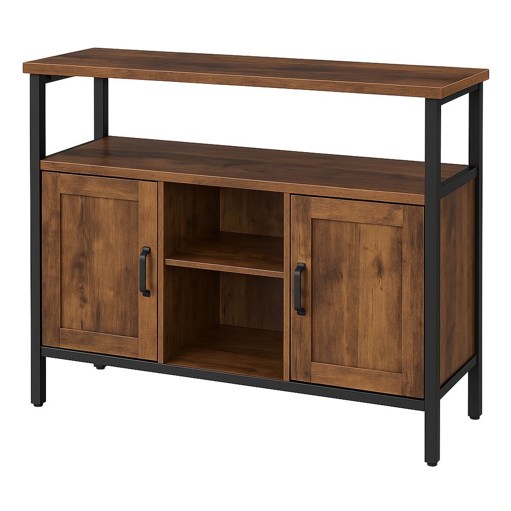 Aparador MDF Marrón Negro Bisagras acero inoxidable 2 puertas 2 estantes abiertos 75×80×35cm