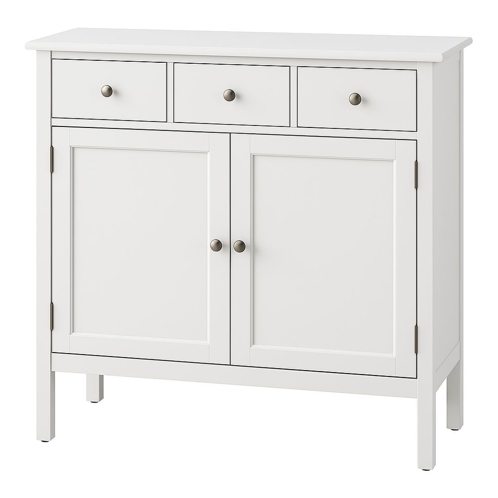 Aparador de Madera Maciza Blanco con 3 Cajones y 2 Puertas 102x40x95 cm