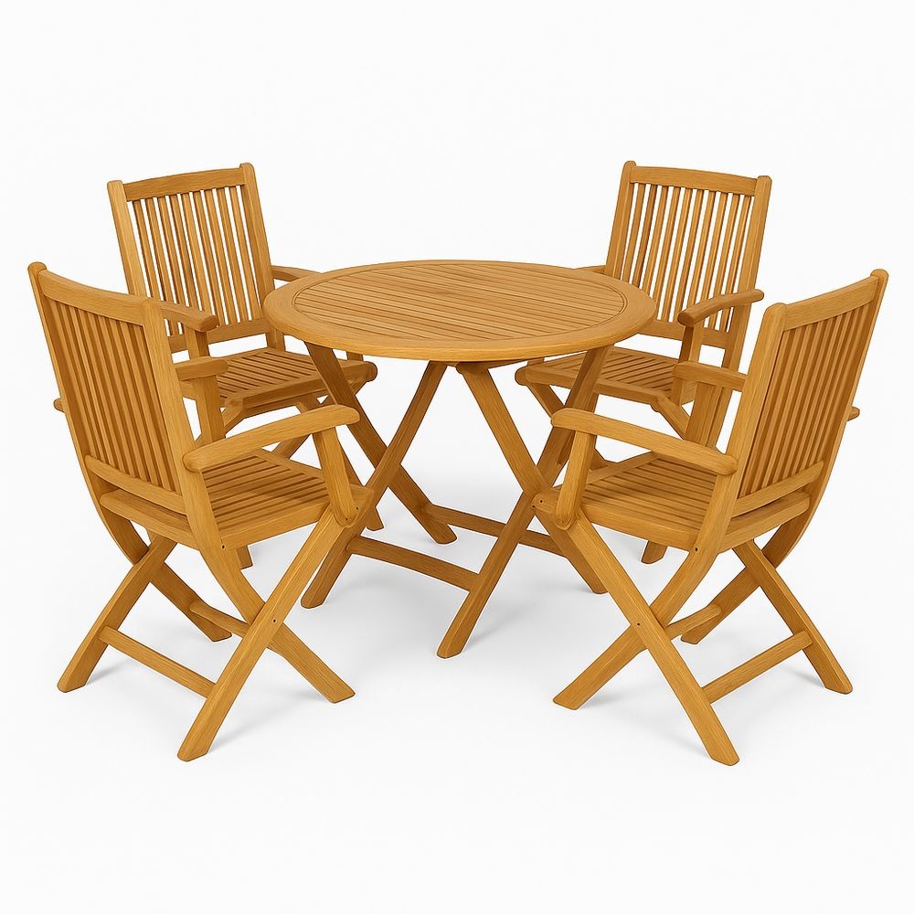 Juego de Mesa y Sillas de Madera para Jardín 5 Piezas Redondo Natural