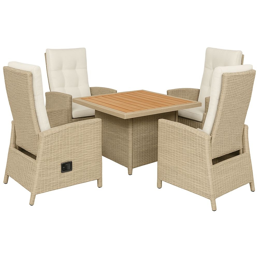 Conjunto de Muebles de Jardín 5 Piezas Rattan Beige Rectangular Respaldo Ajustable