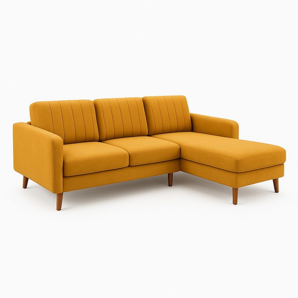 Sofá de 3 plazas tapizado en poliéster color mostaza con patas de madera cónicas 213x88x83cm