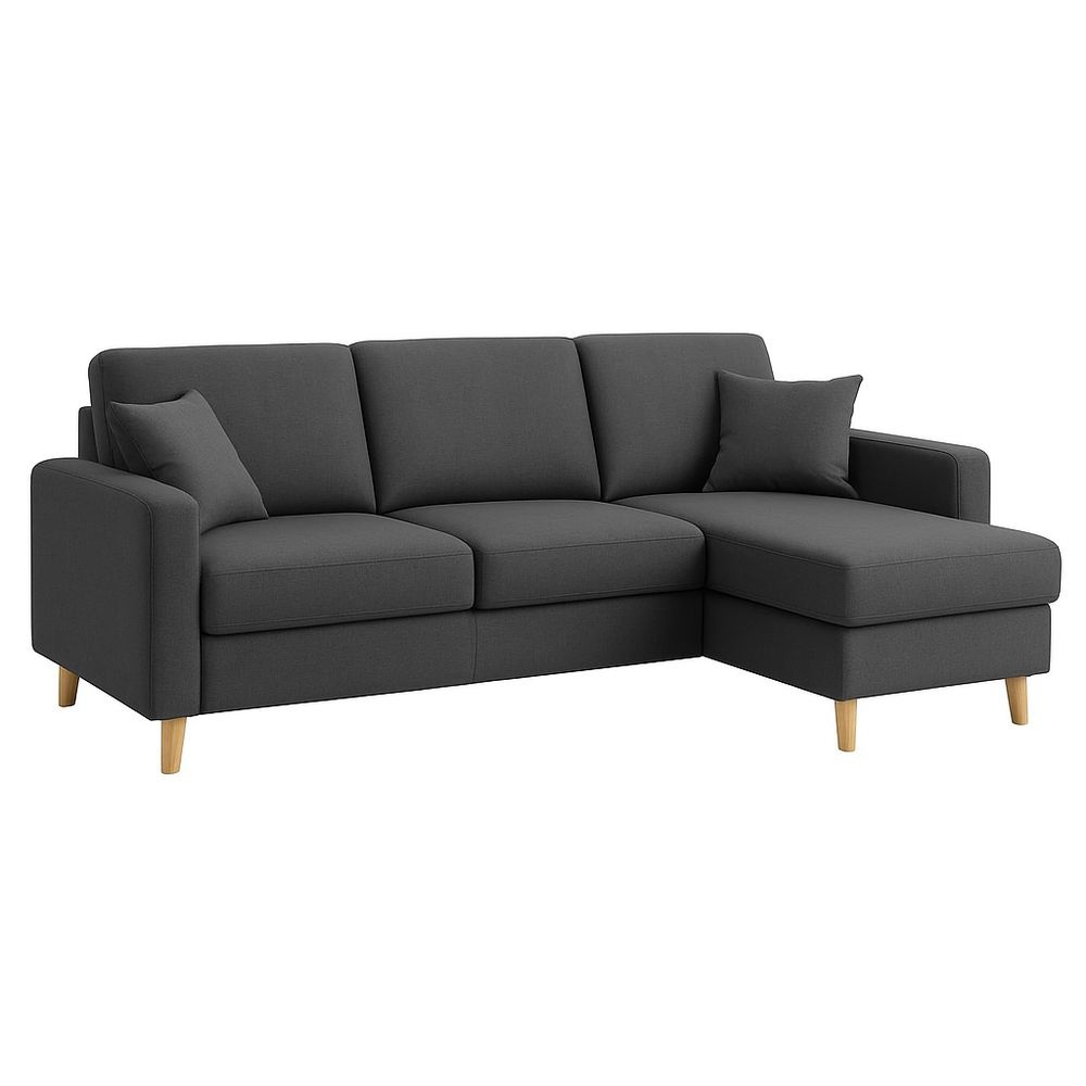 Sofá seccional de poliéster con estructura de madera de haya, 250×150×85 cm, incluye 3 cojines