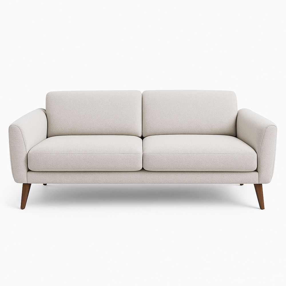 Sofá de dos plazas en tela de poliéster beige con patas de madera maciza, 155 cm