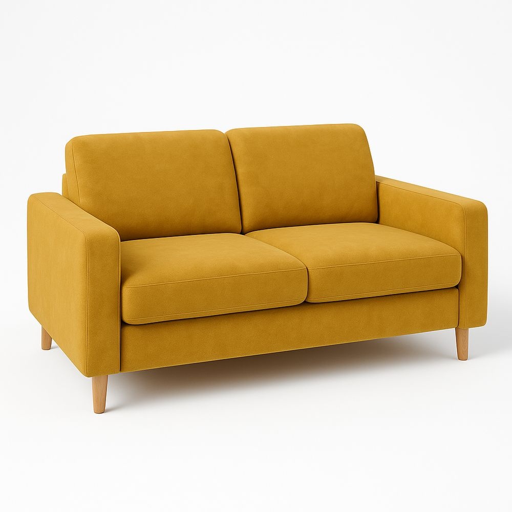 Sofá de Dos Plazas en Tela Poliéster Amarillo con Patas de Madera 146x85x83cm