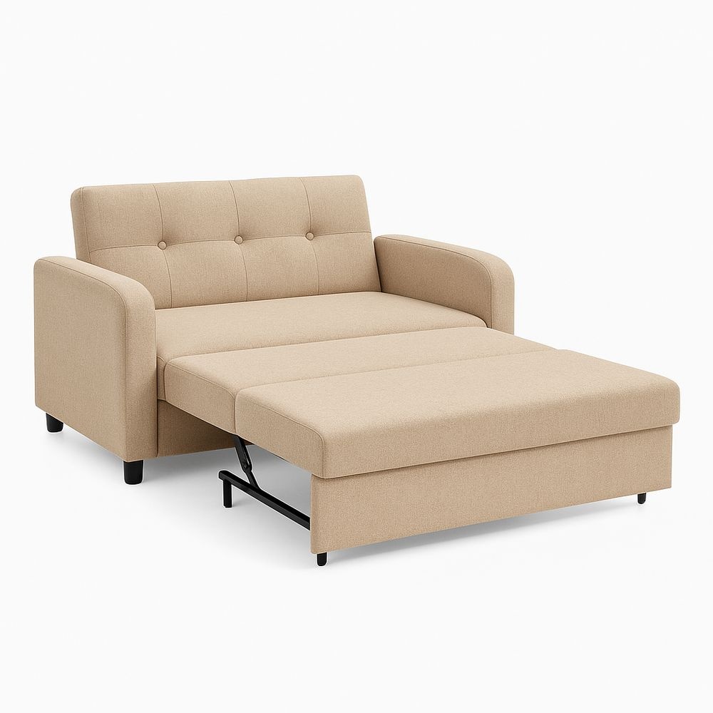 Sofá cama de poliéster con estructura metálica y patas de plástico, 200×150×90 cm
