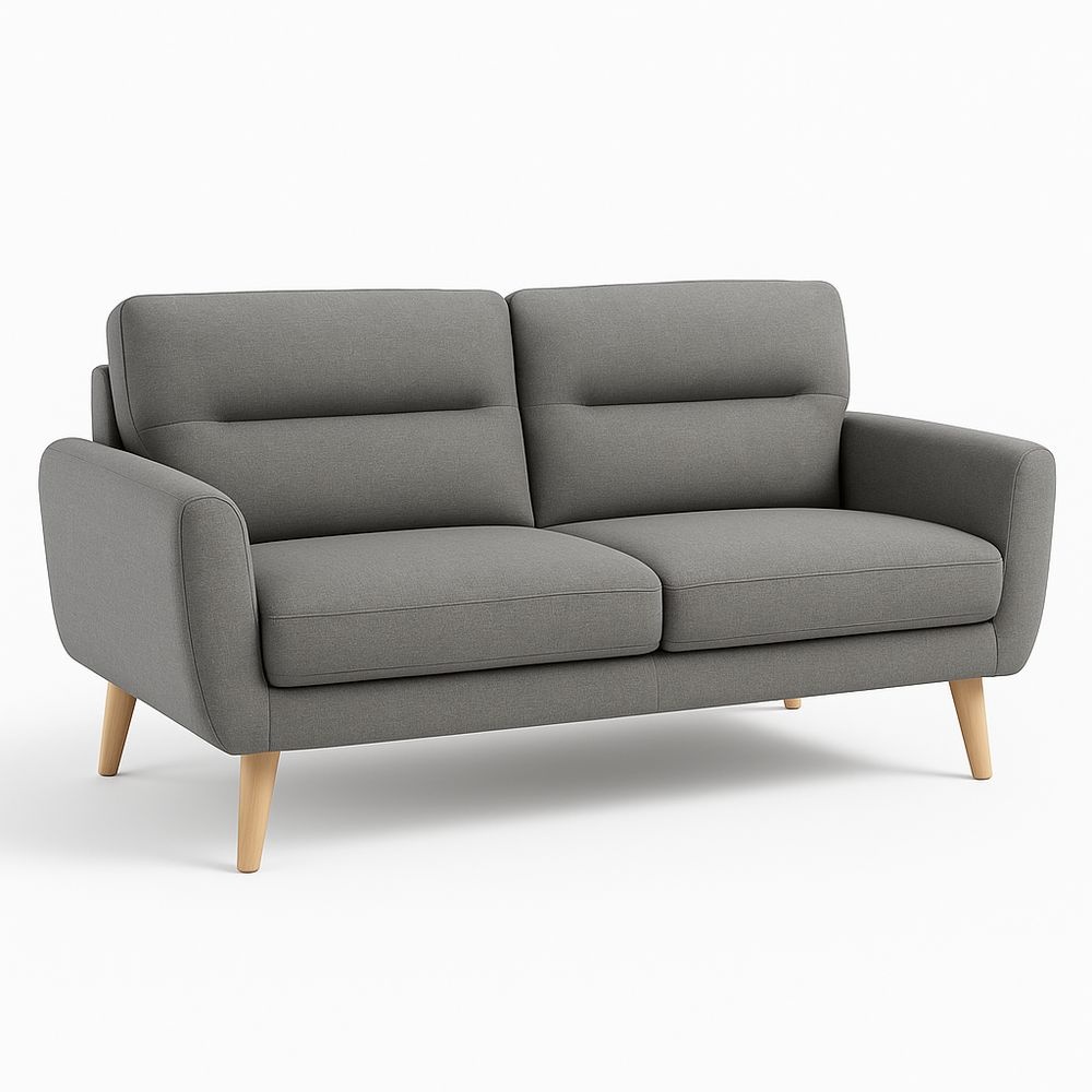 Sofá de Tela Gris Moderno 2 Plazas con Patas de Madera 200cm