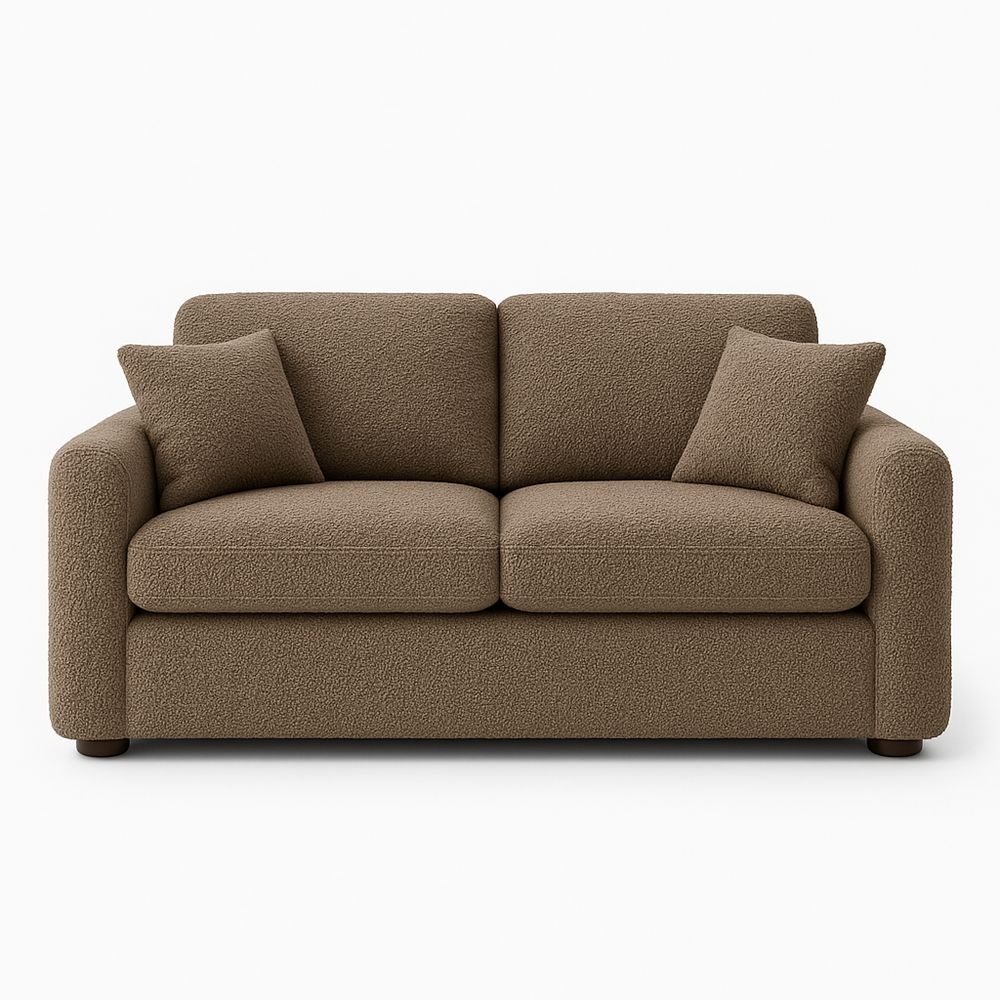 Sofá de 2 plazas tapizado en bouclé de poliéster con estructura de madera 175x90x85cm incluye 2 cojines