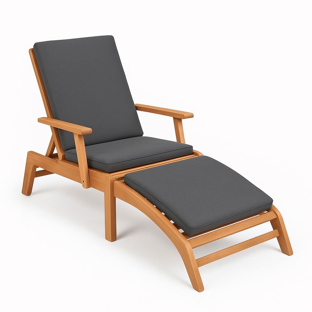 Sillón reclinable de madera con cojines de poliéster gris 198 cm